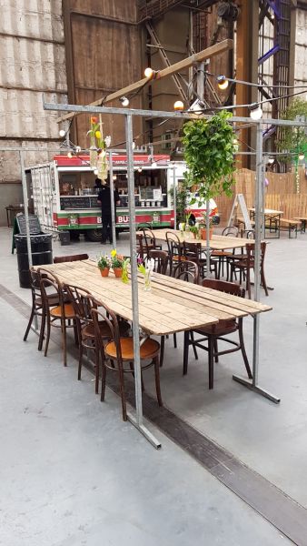 Wil je 3-meter tafels huren? Dit is een zeer bekend formaat. In de basis is dit een marktkraam van 3 meter echter zonder dakzeil. Door de bovenbouw kun je de tafel voorzien van verlichting en andere sfeerproducten. Hiermee creëer je een gezellige eettafel voor grotere groepen. Dankzij de afwezigheid van het bovenzeil zijn deze tafels zeer geschikt voor indoor gebruik. De 3-meter tafel heeft een stevige constructie en is hiermee een oerdegelijke tafel. Met aankleding naar eigen ideëen krijgt deze tafel de gewenste uitstraling die je zoekt. Om de tafel aan te vullen kun je ook verlichting, klapstoelen of bierbanken mee huren.